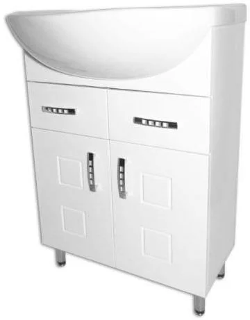 Підлогова конструкція тумби з умивальником забезпечує стійкість та зручність монтажу. Модель виконана з ДСП, а фасад із МДФ у білому кольорі, що сприяє легкому догляду та гармонійному поєднанню з різними стилями інтер'єру ванної кімнати. У комплектацію входять тумба, умивальник і регульовані ніжки для точного вирівнювання на нерівній підлозі.