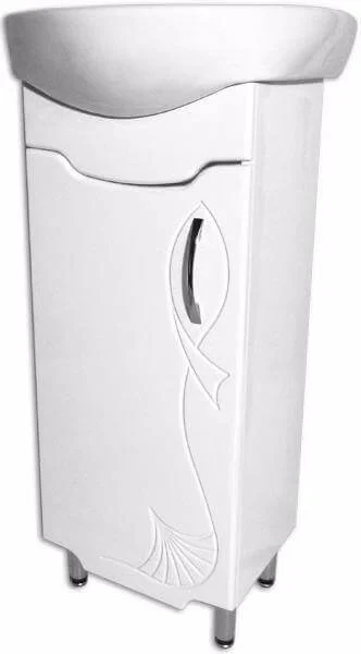 - Повна комплектація: до складу входить тумба, умивальник «Лотос 70» з отвором і переливом, а також регульовані ніжки для вирівнювання на нерівній підлозі.