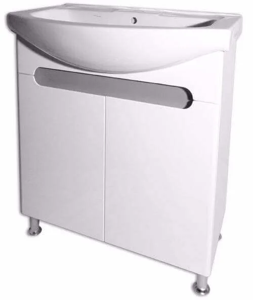 Конструкція моделі передбачає готовий комплект для встановлення, що включає тумбу, умивальник і регульовані ніжки. Корпус виготовлений з ламінованої ДСП товщиною 16 мм, що забезпечує стійкість до вологи в умовах ванної кімнати. Фасад і зовнішні поверхні виконані з МДФ, покритого високоглянцевою емалевою фарбою, що спрощує догляд і підтримує естетичний вигляд.