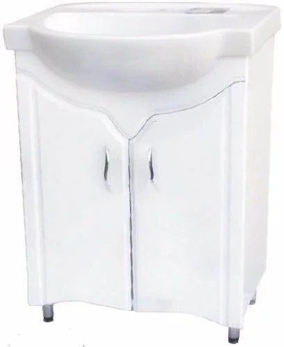 - Повноцінна комплектація: до складу входить умивальник Лотос 56 з отвором під змішувач і переливом, а також дві внутрішні полки для зберігання побутової хімії та аксесуарів.