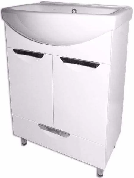 - Повна комплектація: До складу меблевого гарнітуру входить сама тумба, накладний умивальник Акцент 55 з отвором під змішувач і системою переливу, а також комплект регульованих ніжок для монтажу.