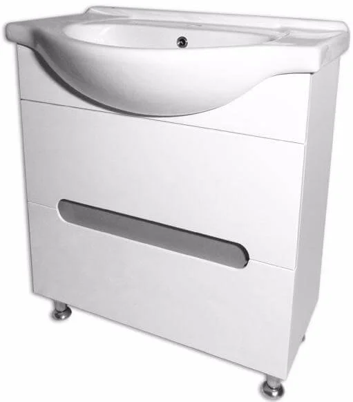 Підлогова конструкція з двома видвижними ящиками по всій ширині забезпечує зручне та ергономічне зберігання. Верхній ящик розділений на два відділення для дрібних предметів, а нижній є цілісним простором для більших речей. Модель комплектується умивальником "Багама", бічні виступи якого утворюють практичні полиці для розміщення засобів особистої гігієни.