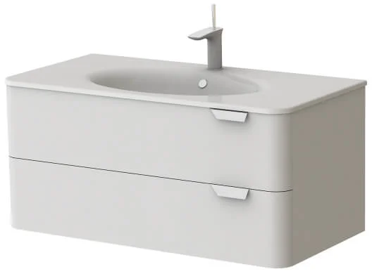 Ця модель створена для сучасних ванних кімнат, де важливий як естетичний вигляд, так і практичність. Підвісна конструкція полегшує прибирання під тумбою, а ящики з плавним ходом підходять для організованого зберігання необхідних речей.