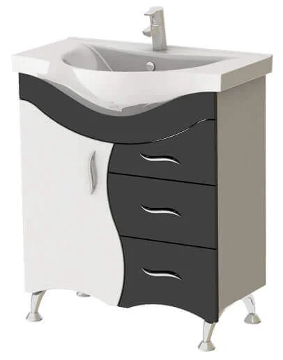 - Готове рішення: комплект постачається в повній збірці, включаючи тумбу, умивальник Vittoria 75 та ніжки для підлогового встановлення.