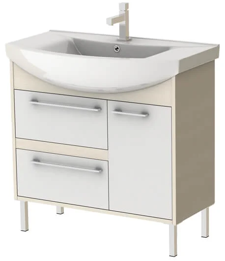Тумба Modena MD-85C з умивальником призначена для підлогового встановлення в ванних кімнатах. Вона підходить для тих, хто цінує функціональність та прагне організувати простір завдяки вбудованій мийній чаші та місткості для зберігання сантехнічних аксесуарів.