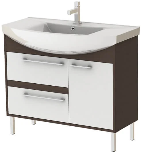 Тумба з інтегрованим умивальником ZENON 95 має ширину 95 см та виконана в білому кольорі з фасадом під венге. Корпус виготовлений з ламінованої вологостійкої ДСП товщиною 18 мм з декоративним гідрофобним покриттям класу емісії Е1.