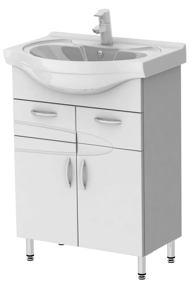 - Проста установка: Тумба встановлюється на регульовані хромовані ніжки, а в конструкції передбачене отвір для підведення сливу.