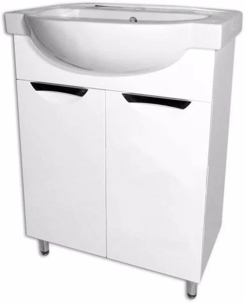 - Готовий до використання комплект: у поставку входять тумба, умивальник виробництва «Днепрокерамика» з отвором під змішувач та переливом, а також набір регульованих ніжок.