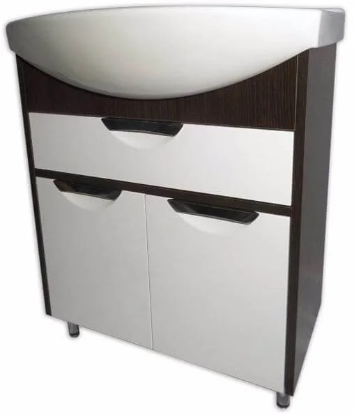 Підлогова конструкція з тумбою та інтегрованим умивальником забезпечує компактне розміщення всіх необхідних елементів у ванній кімнаті. Модель виконана з ДСП та МДФ, що забезпечує стійкість до вологості при правильній експлуатації. Колірна гамма венге дозволяє гармонійно поєднати меблі з різними варіантами оформлення приміщення.
