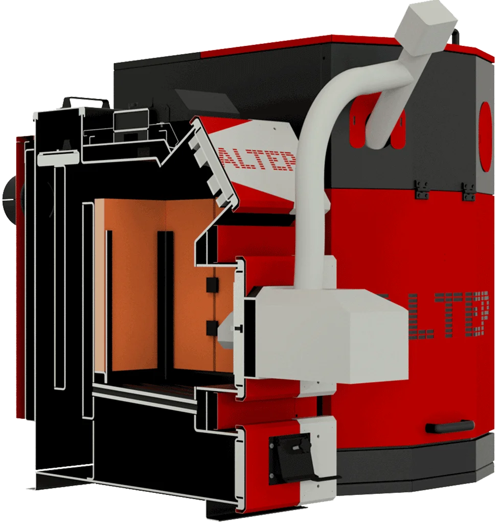 - Гнучкість у виборі палива: Наявність водоохолоджуваних колосників дозволяє використовувати котел у режимі ручного завантаження для спалювання дров, вугілля, брикетів та іншого твердого палива.