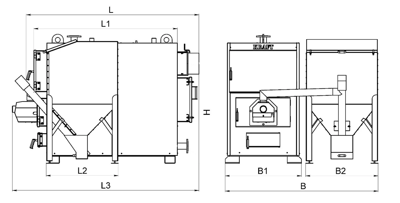 Котел пелетний Kraft Prom F 250 є промисловим опалювальним агрегатом, розробленим для ефективного обігріву великих приміщень площею до 2500 м². Його конструкція базується на жаротрубному теплообміннику, виготовленому з котлової сталі марки 09Г2С (європейський аналог P265GН) товщиною 8 мм, що гарантує виняткову міцність та довговічність.