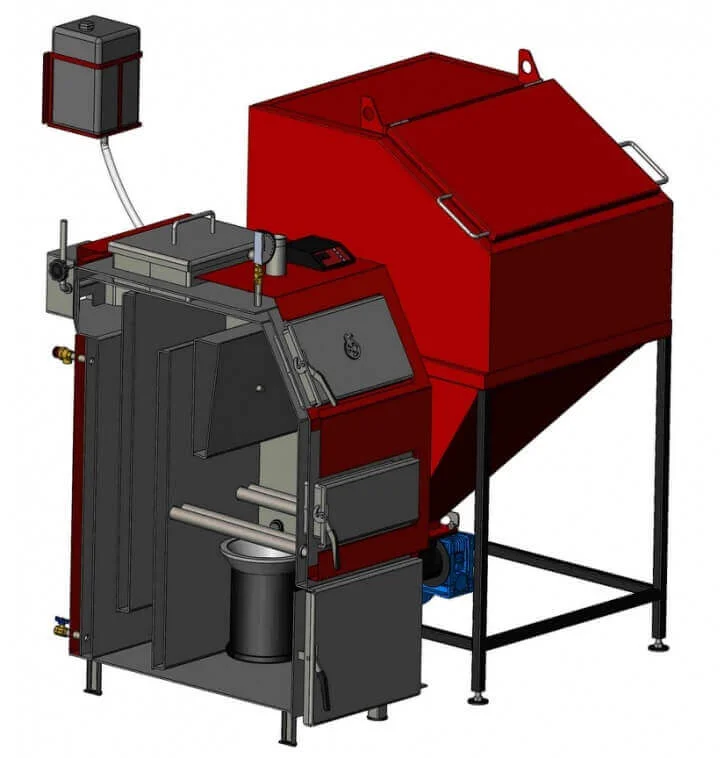 Модель розроблена для роботи як на традиційних видах твердого палива, таких як дрова, вугілля та брикети, так і на пелетах або вугіллі дрібної фракції. Котел підтримує два режими роботи: ручне завантаження для великих фракцій та автоматичне завантаження для дрібних фракцій, що подаються шнеком з бункера. Інноваційна самоочисна пелетна горілка совкового типу, що живиться від бункера об'ємом 1000 літрів, забезпечує тривалий період експлуатації та невибагливість до якості палива, дозволяючи завантажувати паливо в автоматичному режимі лише раз на кілька днів.