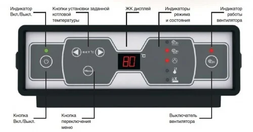 • Електронне керування: Інтегрована електронна панель з модулюючим вентилятором автоматично регулює подачу первинного та вторинного повітря, температуру теплоносія та роботу циркуляційного насоса, забезпечуючи оптимальні режими горіння та зручність експлуатації.