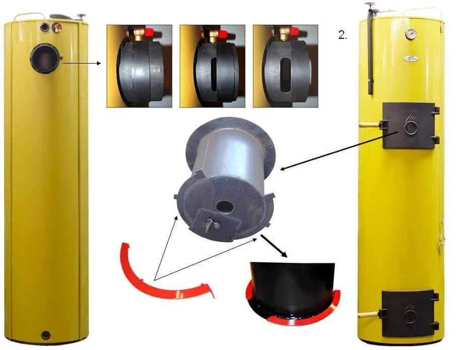 - Висока безпека: Конструкція котла розроблена таким чином, що у випадку значного перевищення навантажень він не вибухне, а стиснеться всередину, що підвищує безпеку експлуатації.