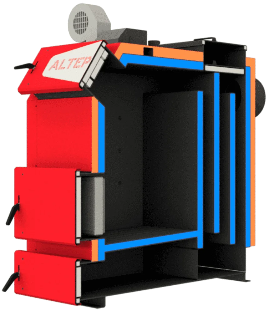 - Можливість модернізації: Заводська адаптація для монтажу системи наддуву та можливість встановлення пелетної факельної горелки з функцією авторозпалу роблять котел універсальним.