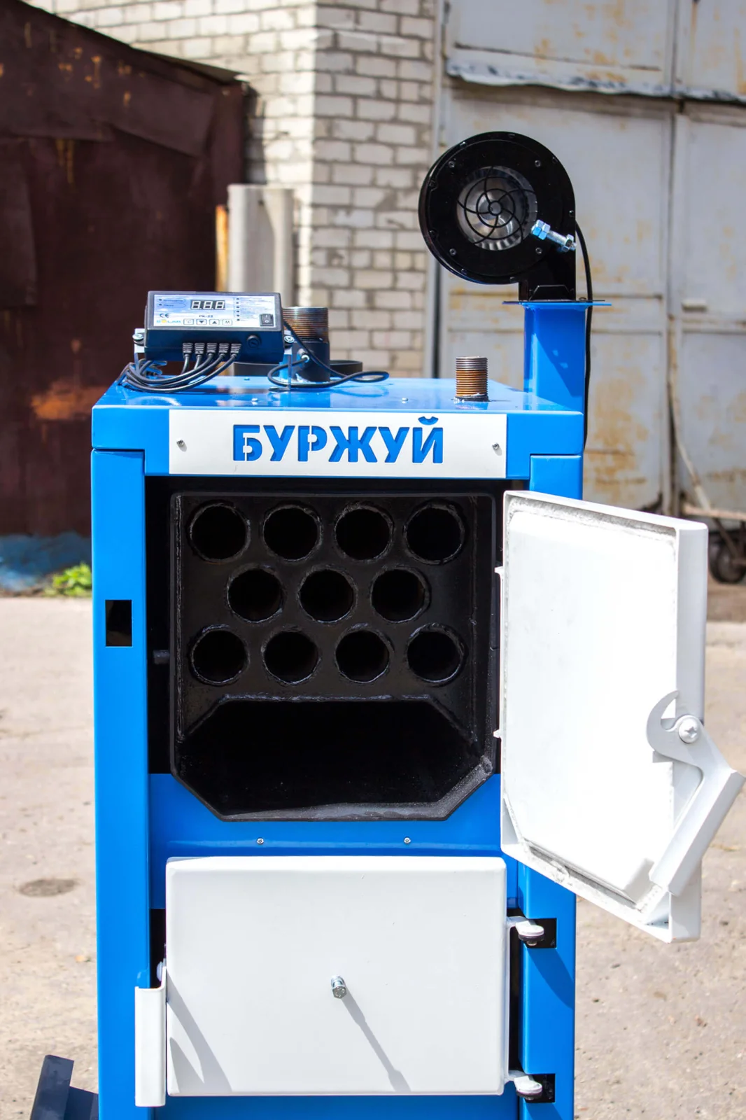 Призначений для опалення приміщень площею до 140 м², твердопаливний котел Буржуй DELUX 14 є сучасним рішенням з автоматичним керуванням. Він ефективно працює на широкому спектрі твердого палива, включаючи кам'яне вугілля, дрова, кокс, брикети, пелети та торф. Завдяки верхньому методу згоряння, при якому полум'я охоплює спочатку верхні шари палива, тривалість горіння на одному завантаженні може досягати 10-14 годин для дров та до 48 годин для вугілля, забезпечуючи економну витрату.