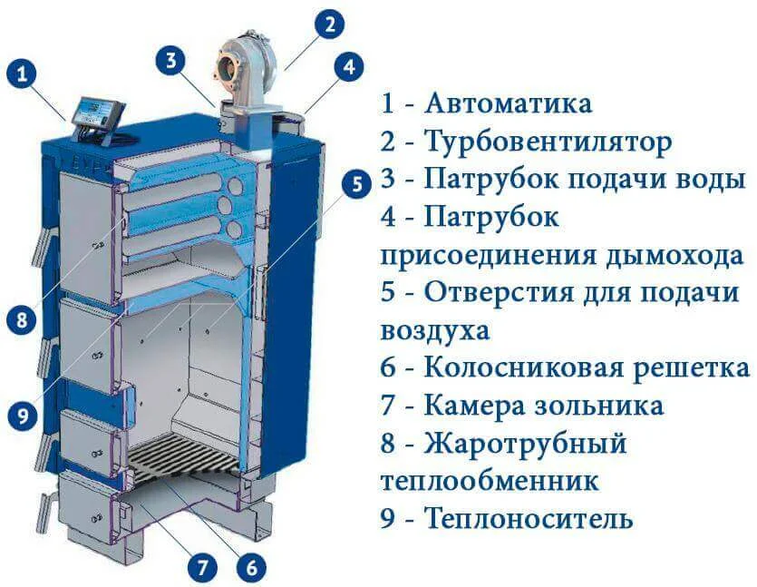 - Універсальність палива: Можливість використання різних видів твердого палива, включаючи вугілля, дрова, брикети, пелети, торф, стружку, тирсу та солому.