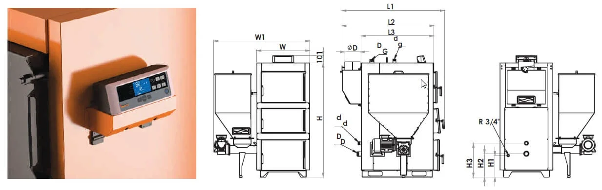 - Ефективне спалювання палива: Електронне управління та нагнітальний вентилятор точно дозують повітря, забезпечуючи повне згоряння та високий ККД.