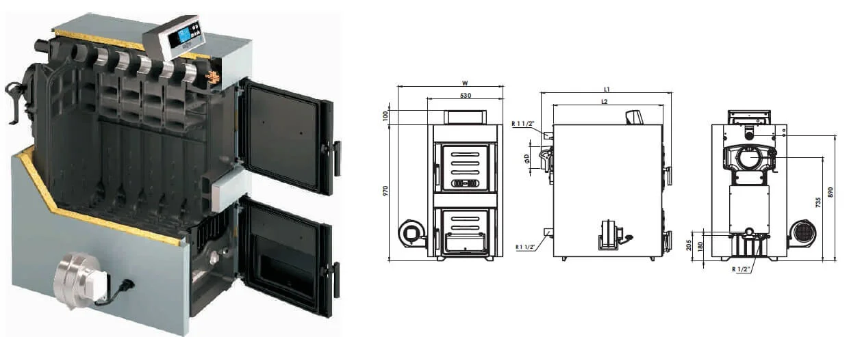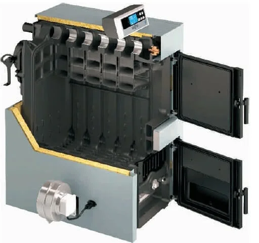 - Довговічність та надійність: Корпус котла та дверцята повністю теплоізольовані, використовуючи вогнетривке керамічне волокно для дверцят та мінеральну теплоізоляцію для інших частин, що мінімізує тепловтрати та підвищує загальну ефективність системи.