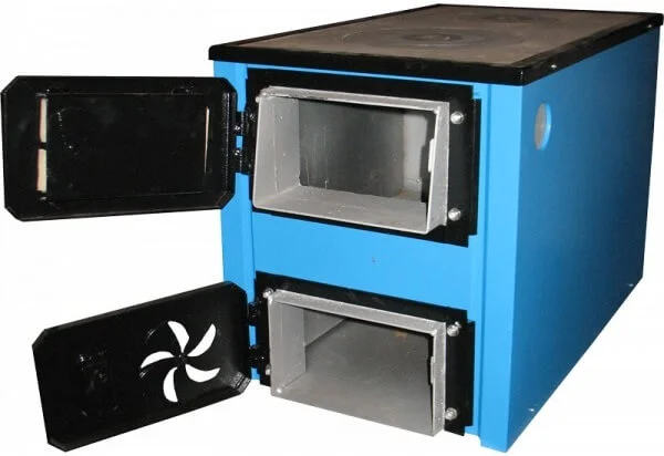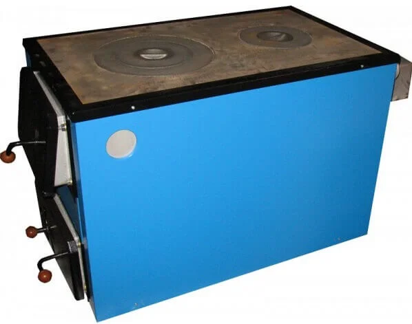 Котел являє собою зварну конструкцію прямокутної форми з листової сталі товщиною 3 мм, що складається з камери згоряння, розділеної колосниковою решіткою на топку та зольник. Навколо цих елементів циркулює вода у водяній сорочці, яка служить теплообмінником. Зовні корпус закритий декоративною обшивкою, а між корпусом та обшивкою укладена теплоізоляція для зниження втрат тепла. Верхня частина камери згоряння оснащена чавунною плитою, що дозволяє використовувати котел для приготування їжі.