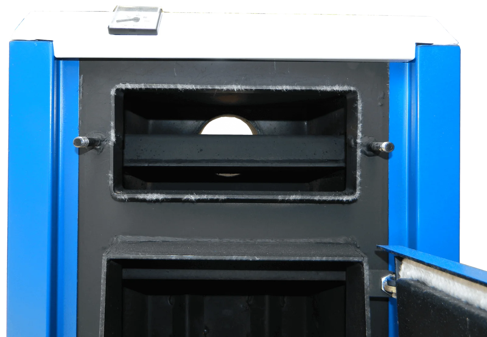 - Механічне регулювання тяги: Повітряна заслінка з регулювальним болтом дозволяє точно контролювати подачу вторинного повітря.