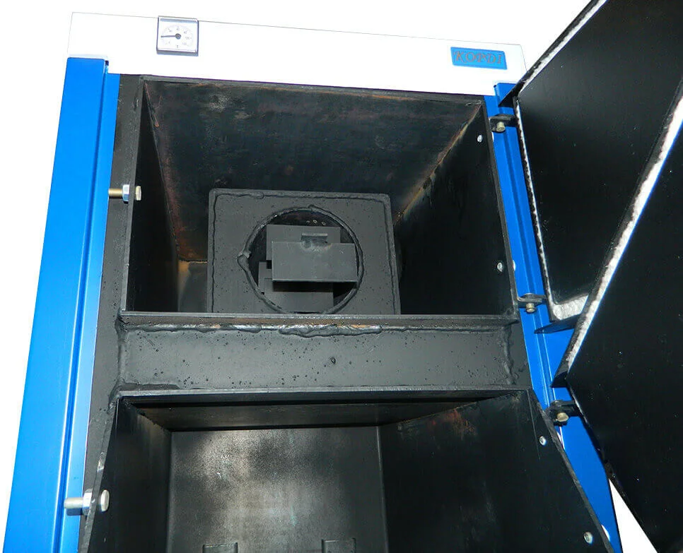 Конструкція котла виконана з використанням високоточної лазерної різки та зварена напівавтоматичним зварюванням апаратом Fronius, що гарантує точність збірки та надійність швів. В якості палива можуть використовуватися вугілля, дрова або кокс, що робить його універсальним рішенням для різних умов експлуатації. Об'єм водяної сорочки становить 59 літрів, а об'єм завантажувальної камери – 72 літри, що дозволяє забезпечити тривале горіння.