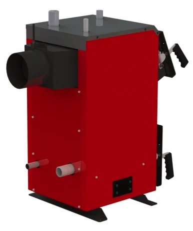 Теплообмінник та топка котла виготовлені з котлової сталі товщиною 5 мм, що гарантує тривалий термін служби до 12-15 років. Колосники виконані з товстого чавуну, що дозволяє безпечно використовувати висококалорійне вугілля. Горизонтальний димохід, виведений назад, оснащений шибером для регулювання тяги, що є важливим для правильної роботи котла.