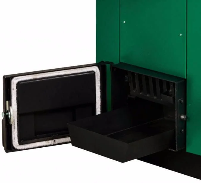 - Зручність обслуговування: Дводверна система з похилими верхніми дверцятами для завантаження та прямими нижніми для очищення від золи спрощує експлуатацію.