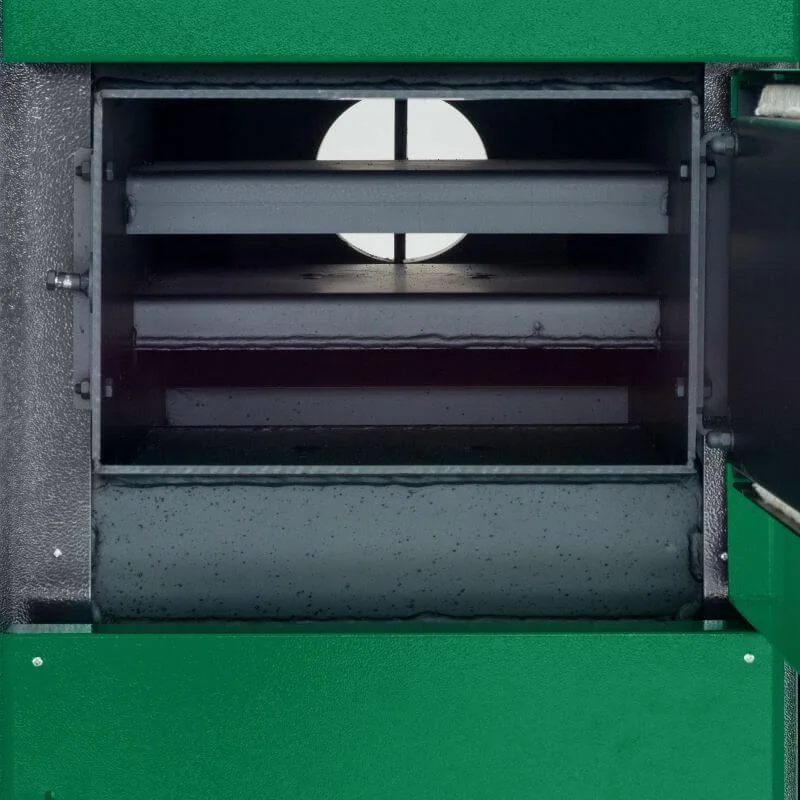- Зручне обслуговування: Шурувальний механізм для очищення колосників та легкий доступ до димоходу.