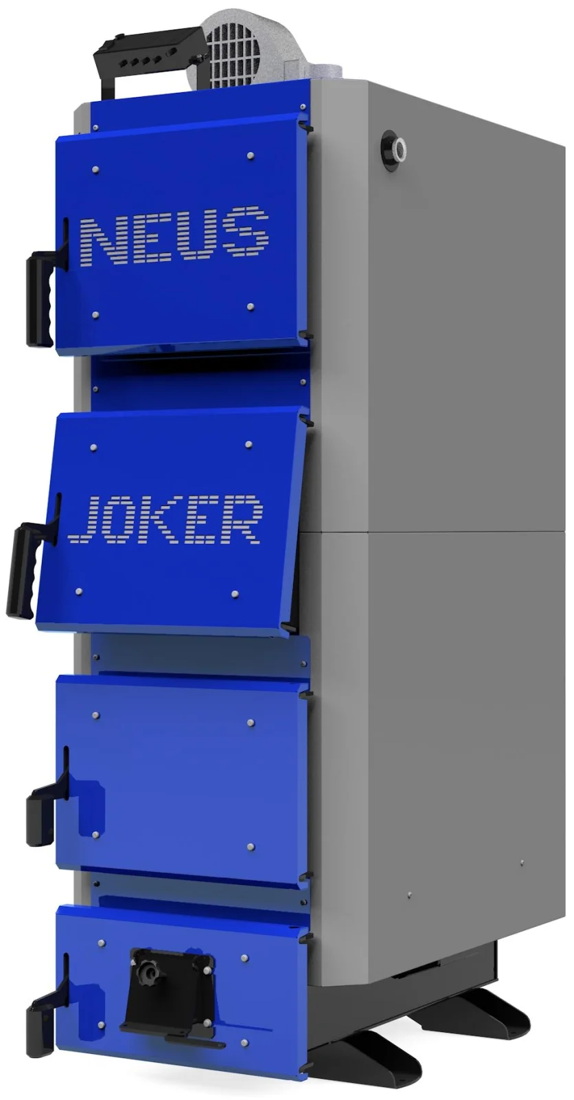 Твердопаливний котел Neus Joker (Джокер) 27 кВт є сучасною розробкою, призначеною для ефективного опалення житлових, виробничих, комерційних та державних об'єктів з індивідуальною системою опалення. Ключовою особливістю моделі є значно збільшена площа тепловіддачі, досягнута завдяки застосуванню 3-ходового теплообмінника. Це забезпечує тривалий час роботи на одному завантаженні палива, що становить від 18 до 20 годин.