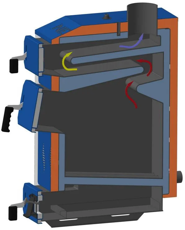 • Універсальність палива: Ефективно працює на дровах, вугіллі, брикетах, торфі, забезпечуючи гнучкість у виборі паливних ресурсів.