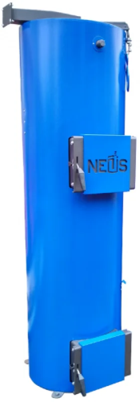 Твердопаливний котел Neus Турбо 35 кВт вирізняється циліндричною формою, яка сприяє рівномірному розподілу тиску на стінки та підвищує надійність конструкції. Теплообмінник котла виготовлений з цільних листів високоякісної сталі товщиною 5 мм без додаткових зварних швів, що дозволяє йому працювати під тиском до 1,8 бар.