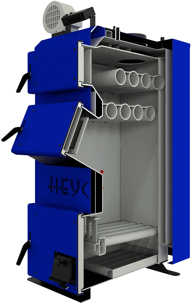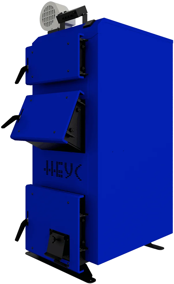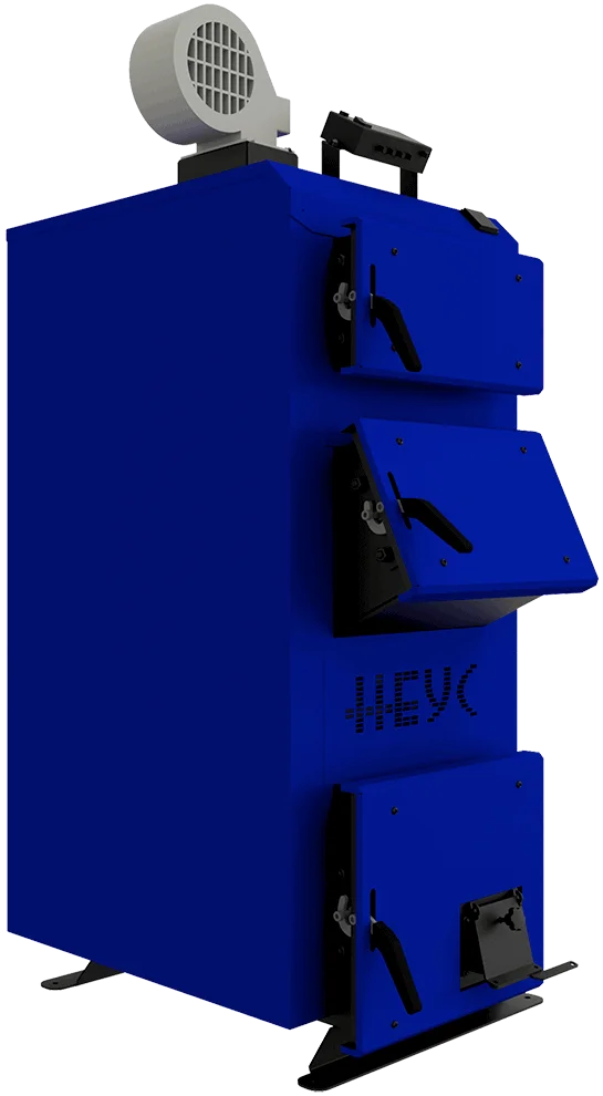 Твердопаливний котел НЕУС-В 17 кВт оснащений мікропроцесорним регулятором (контролером), який стабілізує температуру теплоносія шляхом плавного регулювання обертів нагнітального вентилятора, забезпечуючи оптимальний режим горіння. Конструкція котла включає збірно-зварний корпус з камерою згоряння та двоходовим теплообмінником з ряду товстостінних безшовних труб. Між подвійними стінками котла розташовані водяні перегородки, що підвищує ефективність теплообміну.