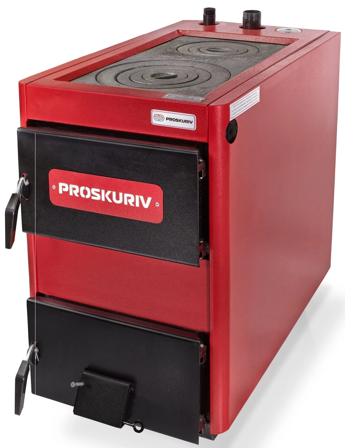 Водогрійний твердопаливний апарат Проскурів АОТВ-22КД є економічно вигідним рішенням для індивідуального опалення приміщень площею до 220 м², особливо за відсутності газопостачання. Котел оснащений сталевим теплообмінником товщиною 6 мм, що включає горизонтальні та вертикальні димогарні труби, забезпечуючи ефективний відбір тепла та ККД 75%. Модель розрахована на використання вугілля як основного палива, а також брикетів та дров.