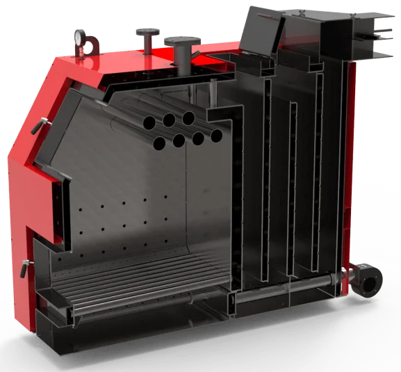 - Автоматична подача палива: Можливість дооснащення бункером та шнеком для автономної роботи на дрібній фракції.