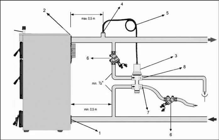 - Автоматичне регулювання: Термостатичний клапан автоматично контролює подачу повітря, оптимізуючи процес горіння відповідно до встановленої температури.