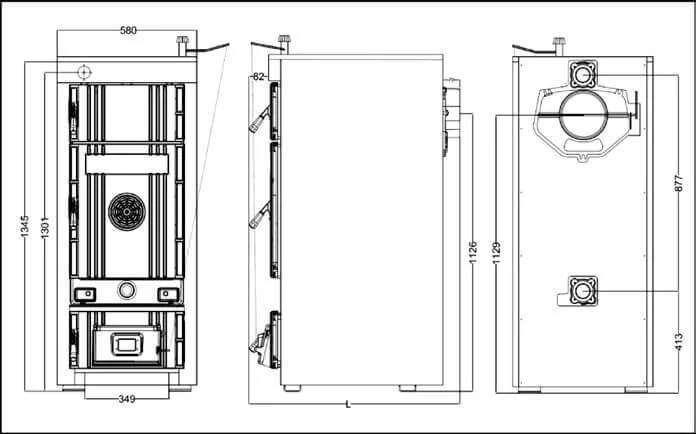 - Зручність експлуатації: Великі дверцята забезпечують легке завантаження палива та спрощують процес обслуговування камери згоряння.