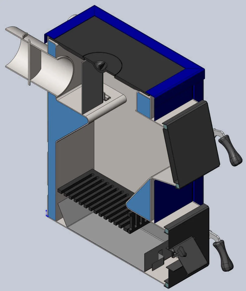 - Універсальність палива: Можливість використання широкого спектру твердого палива, включаючи вугілля, дерево, брикети та кокс.