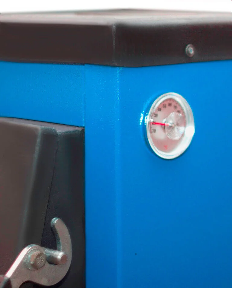 - Надійність конструкції: Теплообмінник зі сталі 3 мм витримує тиск до 3 бар, а ущільнювачі на дверцятах забезпечують безпечну та довговічну експлуатацію.