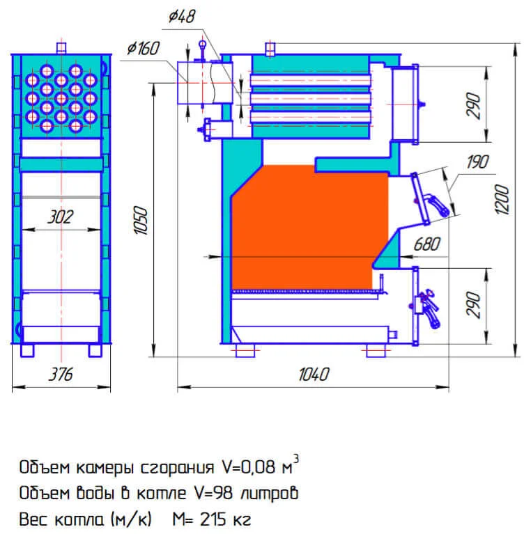 - Універсальність палива: Можливість використання майже всіх видів твердого палива, включаючи вугілля, дрова, брикети та кокс.