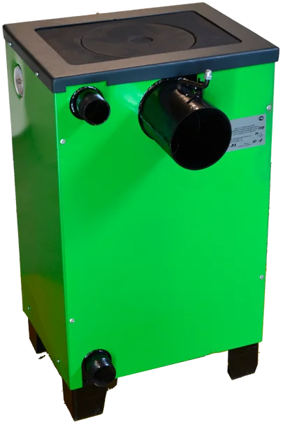 - Функція приготування їжі: Вбудована чавунна плита дозволяє використовувати котел для підігріву води та приготування їжі.