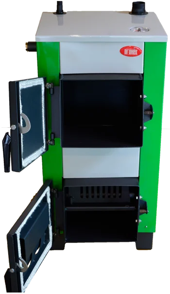 - Зручне обслуговування: На передній стінці теплообмінника розміщені дверцята для обслуговування колосникової решітки, зольної камери, для завантаження палива та очищення конвективного газоходу.
