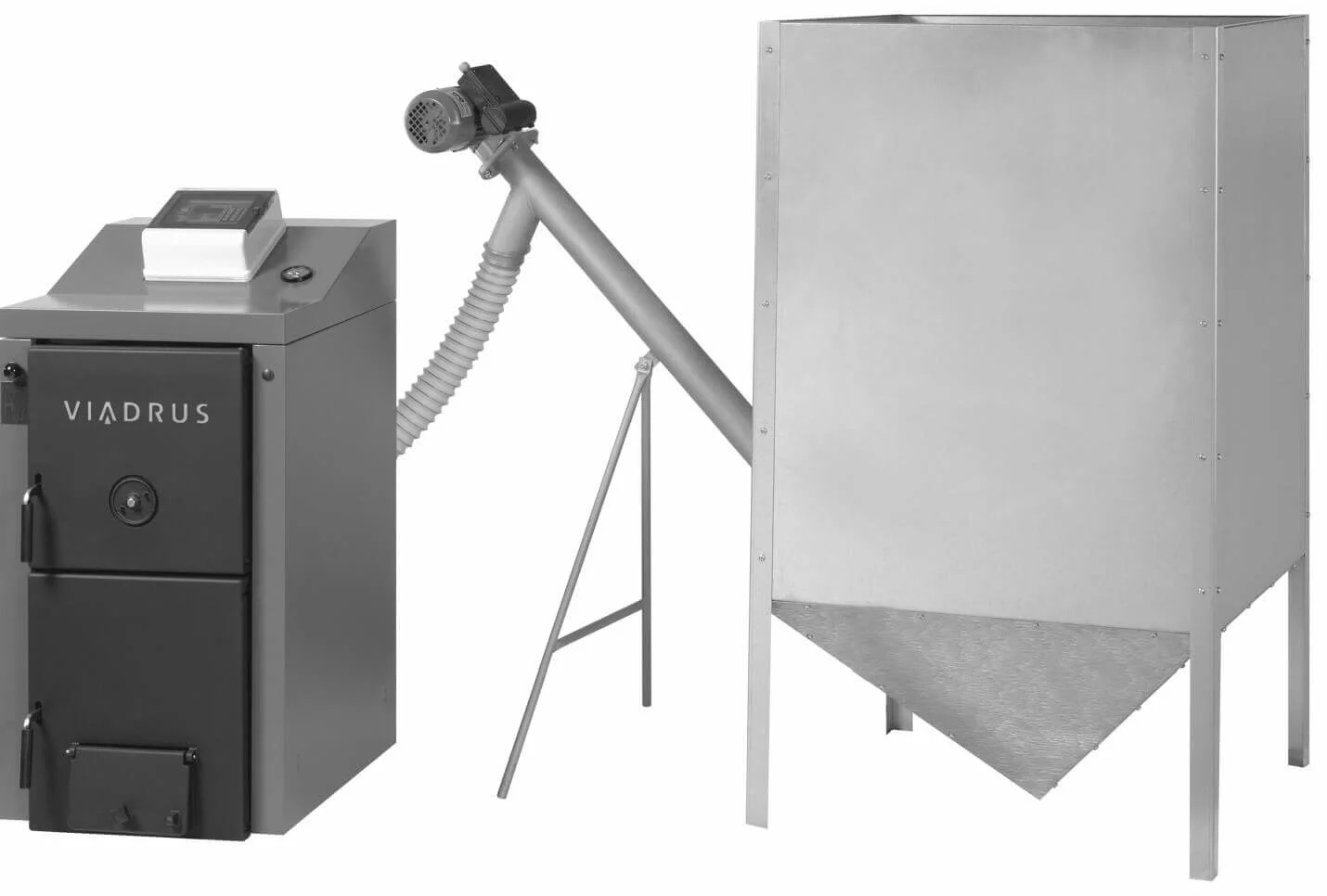 У камері згоряння встановлено пальник, над яким розміщено керамічне склепіння та керамічна плита, що оптимізує процес горіння та позитивно впливає на параметри викидів. Паливо подається до пальника за допомогою двох гвинтових механізмів з незалежними приводами, з'єднаних гнучким запобіжним патрубком, що запобігає зворотному горінню та забезпечує безпечну роботу. Котел оснащений системою автоматичного розпалювання палива та екватермальним регулюванням змішування теплоносія, що дозволяє інтегрувати його з сонячними системами.