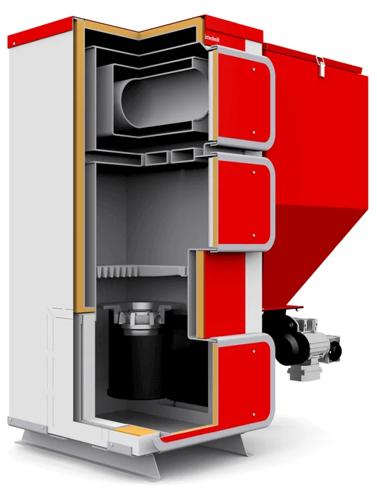 • Автоматизована робота: Система автоматичної подачі вугілля та бункер об'ємом 200 літрів забезпечують зручність експлуатації та мінімізують необхідність частого завантаження палива.