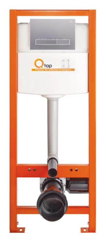 Інсталяція для унітазу Qtap Nest ST 4 в 1 призначена для прихованого монтажу підвісних унітазів, забезпечуючи естетичний вигляд ванної кімнати та підвищений комфорт використання. Вбудований змивний бачок об'ємом 8 літрів, прихований за стіною, значно знижує рівень шуму під час набору води.