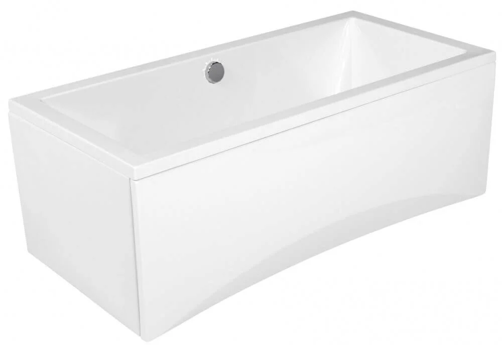 Прямокутна ванна об'ємом 215 літрів оснащена спеціальним місцем для аксесуарів, що підвищує зручність використання. Зливний отвір розташований по центру довгої сторони, що є стандартним рішенням для більшості систем водовідведення. Модель передбачає місце для сидіння, але без можливості встановлення підголівника.