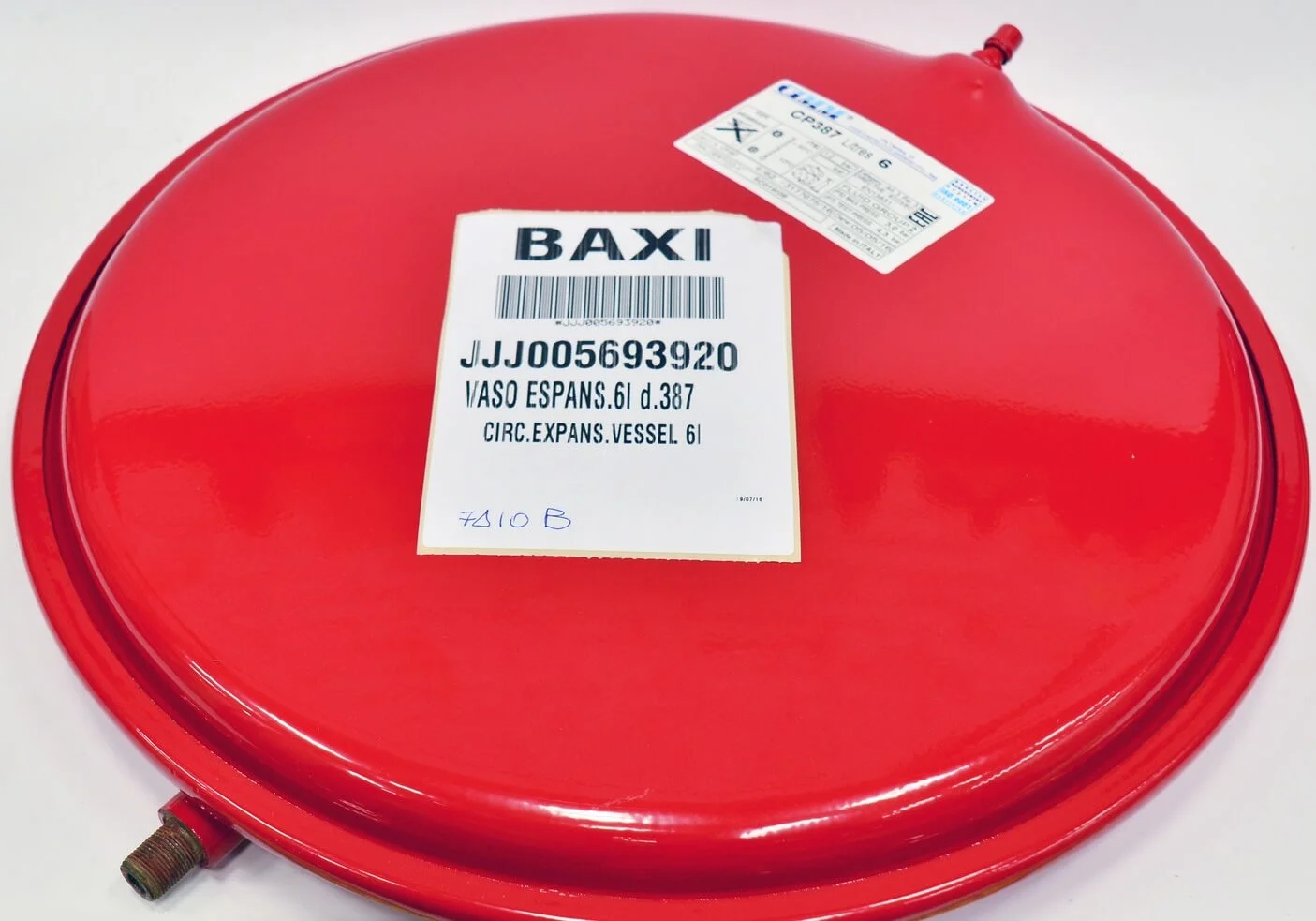 Розширювальний бак призначений для компенсації теплового розширення теплоносія в системах опалення закритого типу. Модель об'ємом 6 літрів виготовлена в Італії компанією Cimm і є оригінальною запасною частиною для певних серій газових котлів. Його конструкція включає мембрану, яка розділяє внутрішній простір на дві камери — для води та повітря, забезпечуючи стабільний тиск у контурі.