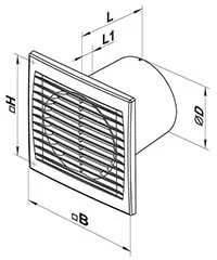 Вентилятор має ступінь захисту IP 34, що дозволяє його використання у приміщеннях з підвищеною вологістю. Сверхтонка лицьова панель оснащена захисною сіткою від комах, запобігаючи їх проникненню всередину.