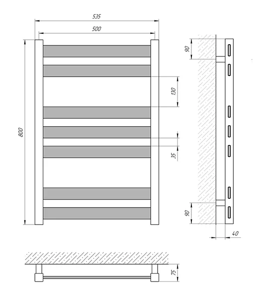 - Висока тепловіддача: Забезпечує тепловіддачу 268 Вт, що сприяє швидкому висиханню рушників та підтриманню комфортної температури у приміщенні.