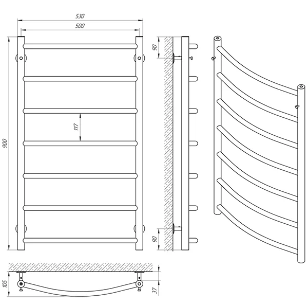 Рушникосушка оснащена нижнім підключенням з внутрішньою різьбою 1/2" та міжосьовою відстанню 500 мм, що спрощує її монтаж. У комплект поставки входять всі необхідні кріплення, кран Маєвського та заглушки, що дозволяє швидко та зручно встановити виріб. Теплова віддача моделі становить 156 Вт, що достатньо для сушіння рушників та підтримки комфортної температури у невеликій ванній кімнаті.